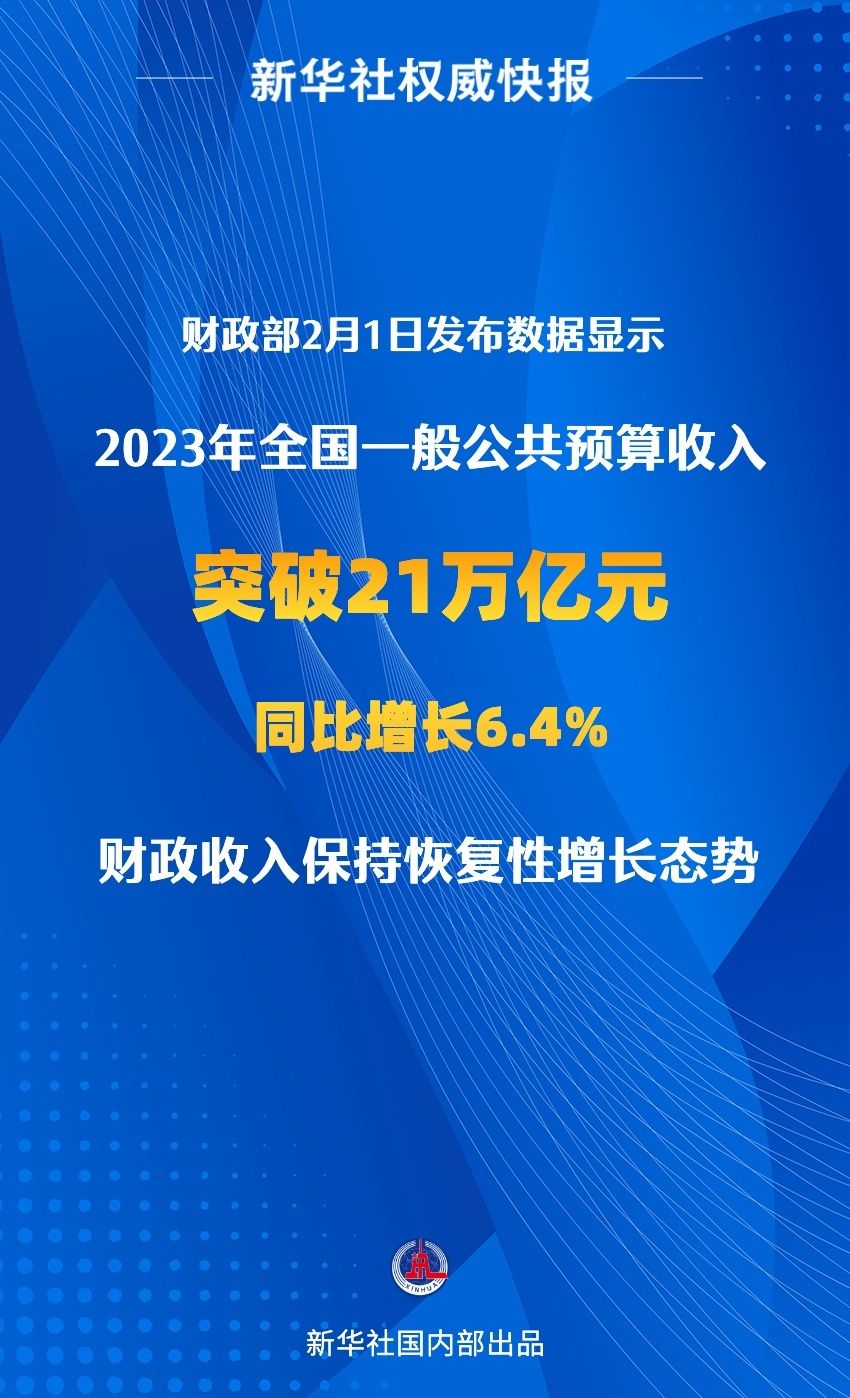 2023年全国一般公共预算收入超21万亿元