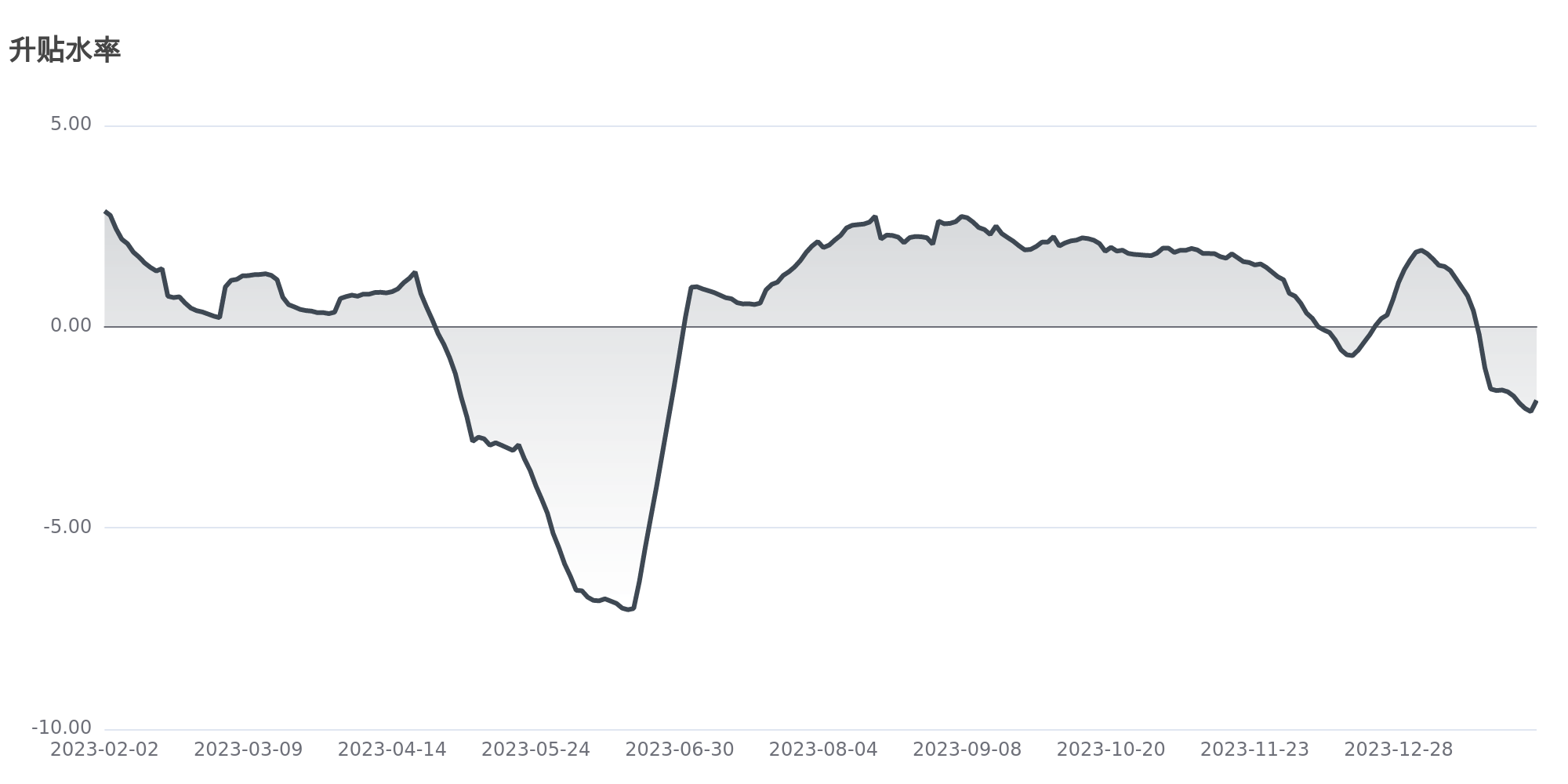 今日该指标值为-1.83%,目前该指标处于近一年较低区间,说明投资者对认为A股市场趋于触底反弹。反映期货市场投资者对市场的看法,该指标越高说明投资者认为当前市场较强,越低则说明认为市场相对较弱,因而与上证指数正相关。