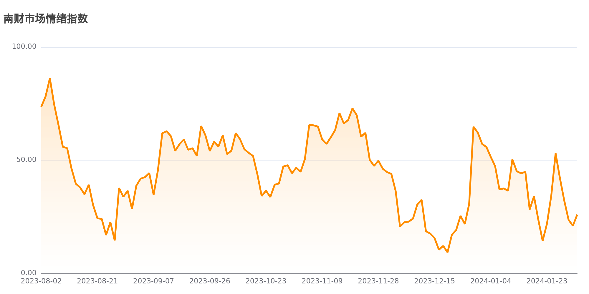 今日南财市场情绪指数为26.0,较前一交易日21.0上涨,市场投资热度提升。