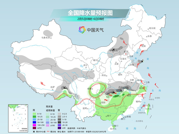 1月31日开始,中东部大范围雨雪展开,雨雪分界线进一步向南推进,已抵达长江中下游一带。昨天,雨雪还在持续,青海东北部、甘肃中东部、内蒙古西南部、宁夏、陕西中北部、山西南部、河北南部、山东西部、河南等地出现小到中雪,河南东南部、安徽北部出现大雪、局地暴雪;安徽中北部、湖北东部、湖南北部等地出现冻雨;安徽南部、江苏南部、江西北部、上海中部等地部分地区出现中到大雨。