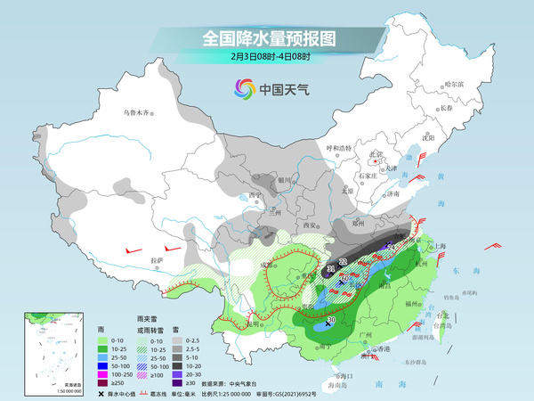 今天(2月3日)开始,中东部大范围雨雪天气进入最强时段,湖南、湖北、河南、安徽部分地区将成为冻雨、强降雪的集中区域,局地将有特大暴雪。在雨雪打压下,中东部大部气温较常年同期偏低,华南地区5日起也将迎来明显降温。