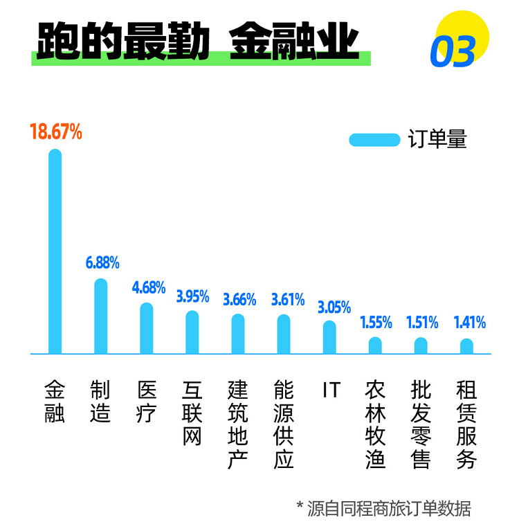 职场如“战场”,在出差中仿佛体现的更淋漓尽致!同程商旅数据显示,30~40岁的男性群体成为差旅群体的主力军,从行业来看,金融行业出差频率最高,架构师岗位跑的最勤,看来行业精英们在数字和合同间穿梭得格外频繁!