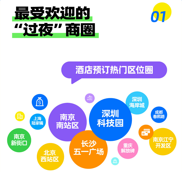 同程商旅数据显示,出差预订酒店时,城市商业中心、火车站附近是普遍的选择。全国最受欢迎的差旅酒店区位圈top3分别是深圳科技园、长沙五一广场、南京南站。