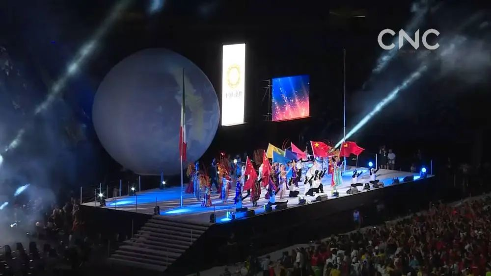 当地时间2019年7月14日,第30届世界大学生夏季运动会在意大利那不勒斯落幕,成都作为下一届举办城市,进行了主题表演。图据中国新华新闻电视网(CNC)