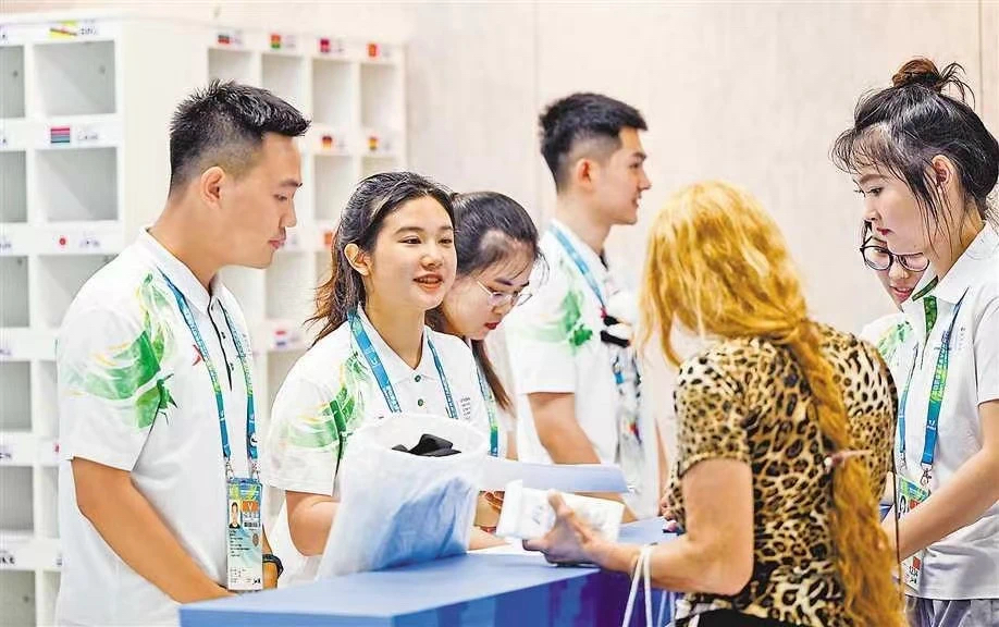 “雄起!”“巴适!”大运会期间,极富成都特色的助威声响彻每一个场馆。“Welcome to Chengdu”“有什么可以帮您”,遍布街头巷尾的1000余个城市志愿服务小站向运动员和中外游客提供最优质的暖心服务。