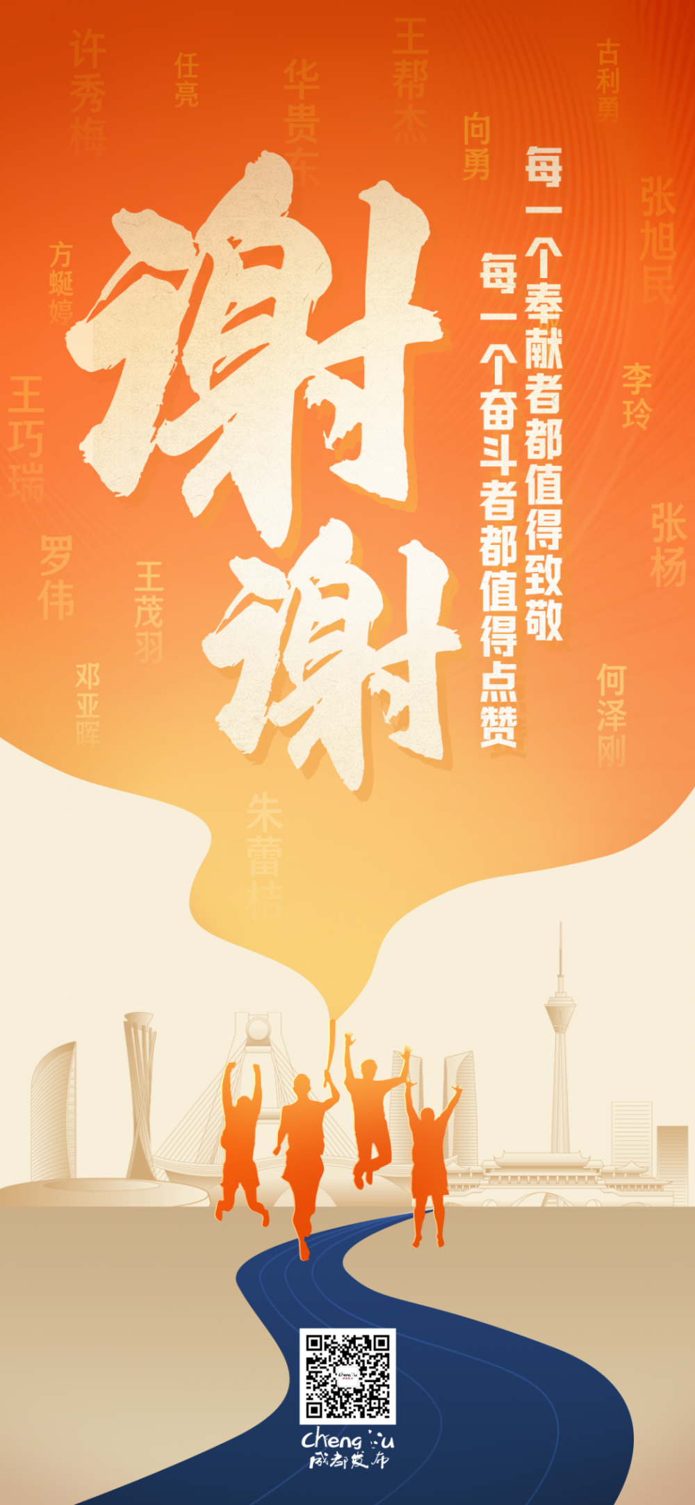 还有许许多多的辛苦付出,还有许许多多不计得失的名字,并不为人知晓。但他们的热力和诚意一直在汇聚,点亮了城市,温暖了彼此,也感召了世界。