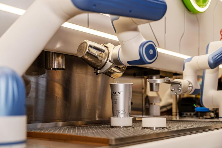 此外,库迪方面告诉壹览商业,机械臂操作不仅能够保证配方配比,稳定产品出品标准,提高品控,还能有效提升卫生质量,让消费者体验更好。而人机协作也提供一种新思路:只要原料充足,且机器设备维护得当,茶猫极有可能实现7*24小时无间断工作,甚至完成无人售卖。