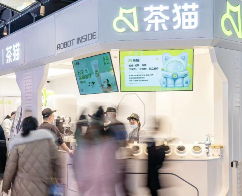 值得注意的是,科技感是茶猫最为独特标签。1月3日,库迪正式发布人机协作战略,在全球范围门店内规模化推行商业机器人应用,这个战略第一步就落在了茶猫。消费者在店内,能够看见两只蓝白配色的机械臂正在工作,从取杯、制作、封口,均由机械臂独立完成,不少消费者表示“第一次见到机器摇奶茶”。壹览商业观察发现,机械臂制作一杯奶茶大概需要35秒,一小时能产出100杯左右。据说速度还可以调整加快,极大节约人力成本。
