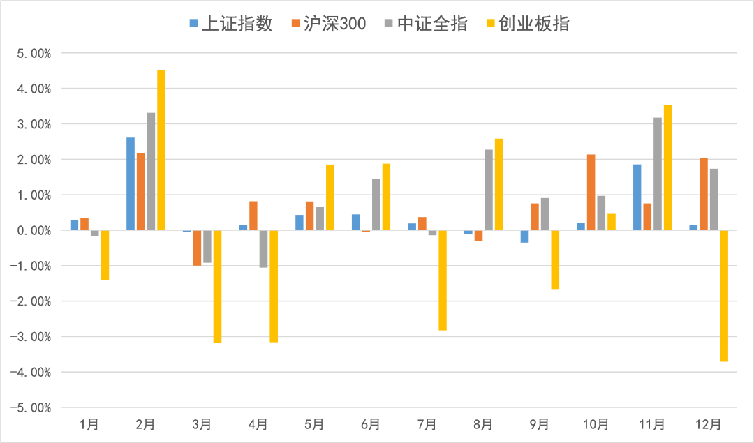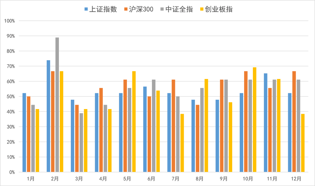 从历史数据看,上证指数、沪深300、创业板指、中证全指这四大A股代表性指数,在2月上涨概率最高。