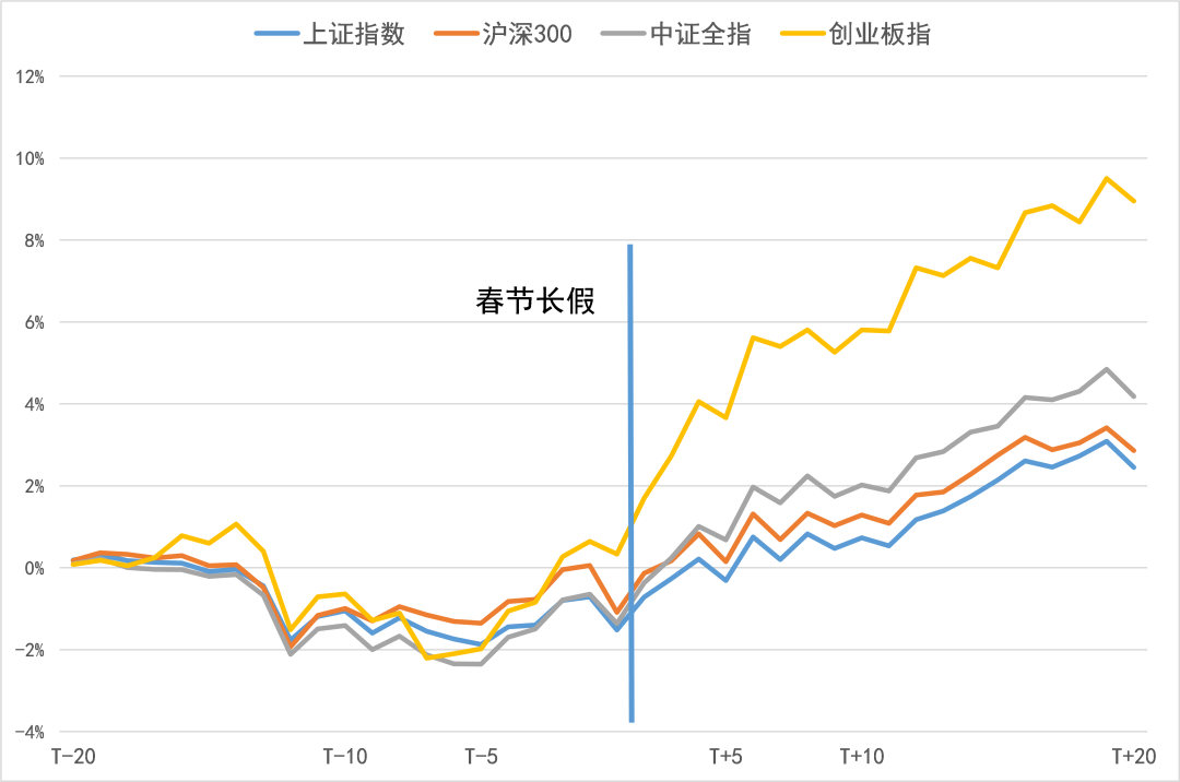 我们统计了2010-2023年春节前20个交易日到长假后20个交易日的平均表现,可以看到春节后A股表现往往更优。