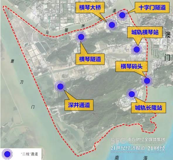 (横琴粤澳深度合作区“二线”通道分布示意图)