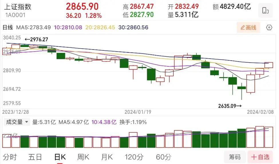 1月24日,在多部门合力稳定市场预期下,上证指数收复2800点。