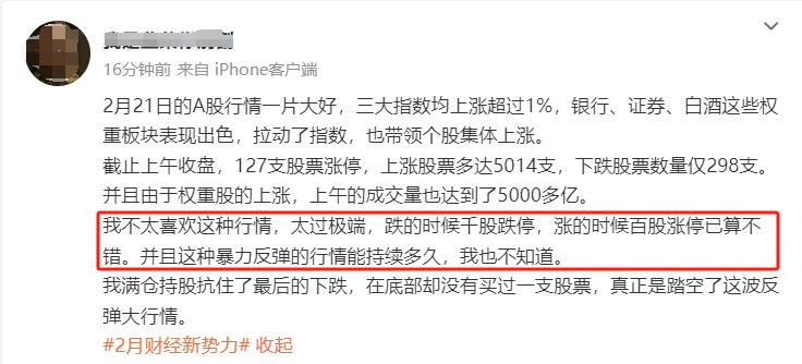 2月21日,A股也罕见的以强势上涨的方式进入了微博热搜榜。 那么,A股后市将会如何演绎呢?