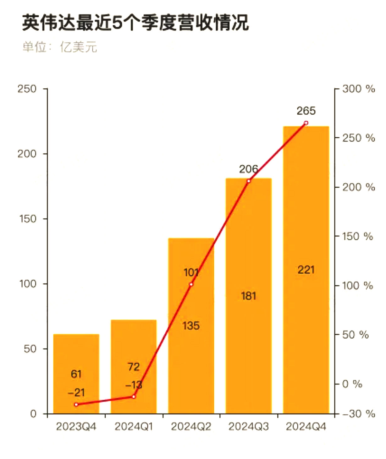 英伟达今日公布了截至 2024 年 1 月 28 日的 2024 财年第四季度财报。财报显示,英伟达第四财季营收达到创纪录的221亿美元,较第三季度增长22%,较上年同期增长265%。