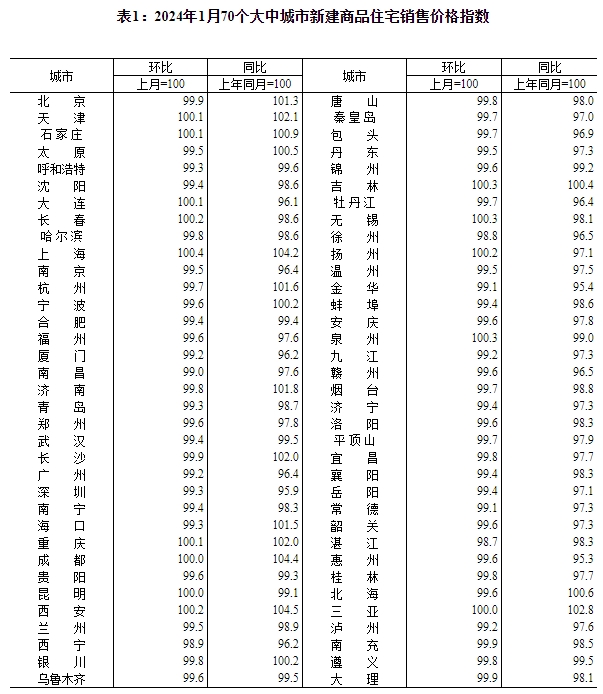 ——国家统计局城市司统计师王中华解读2024年1月份商品住宅销售价格变动情况统计数据