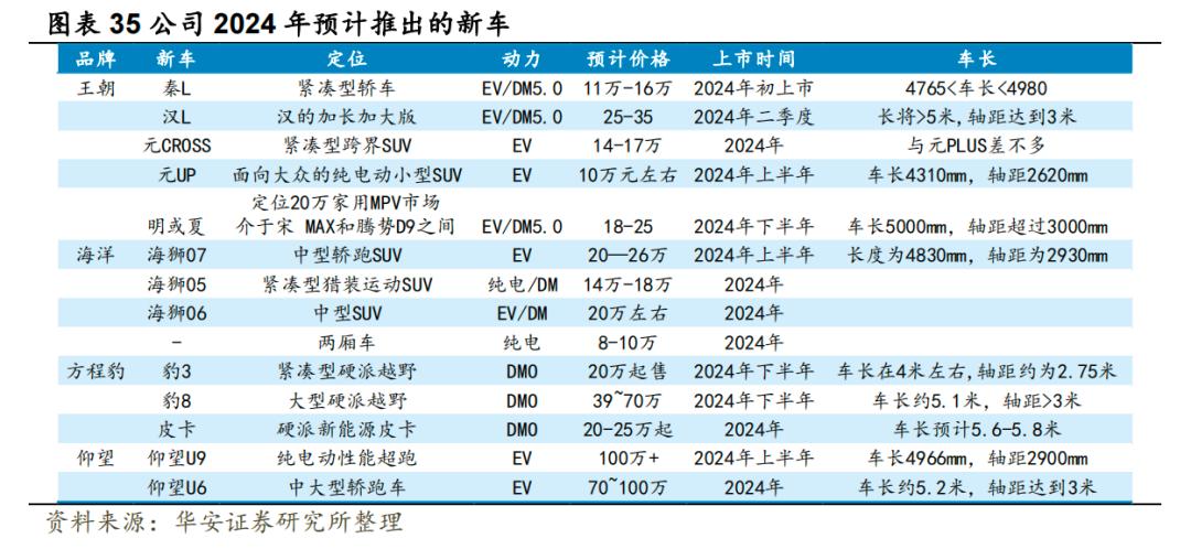 比亚迪2024年将持续发布新产品,图源华安证券