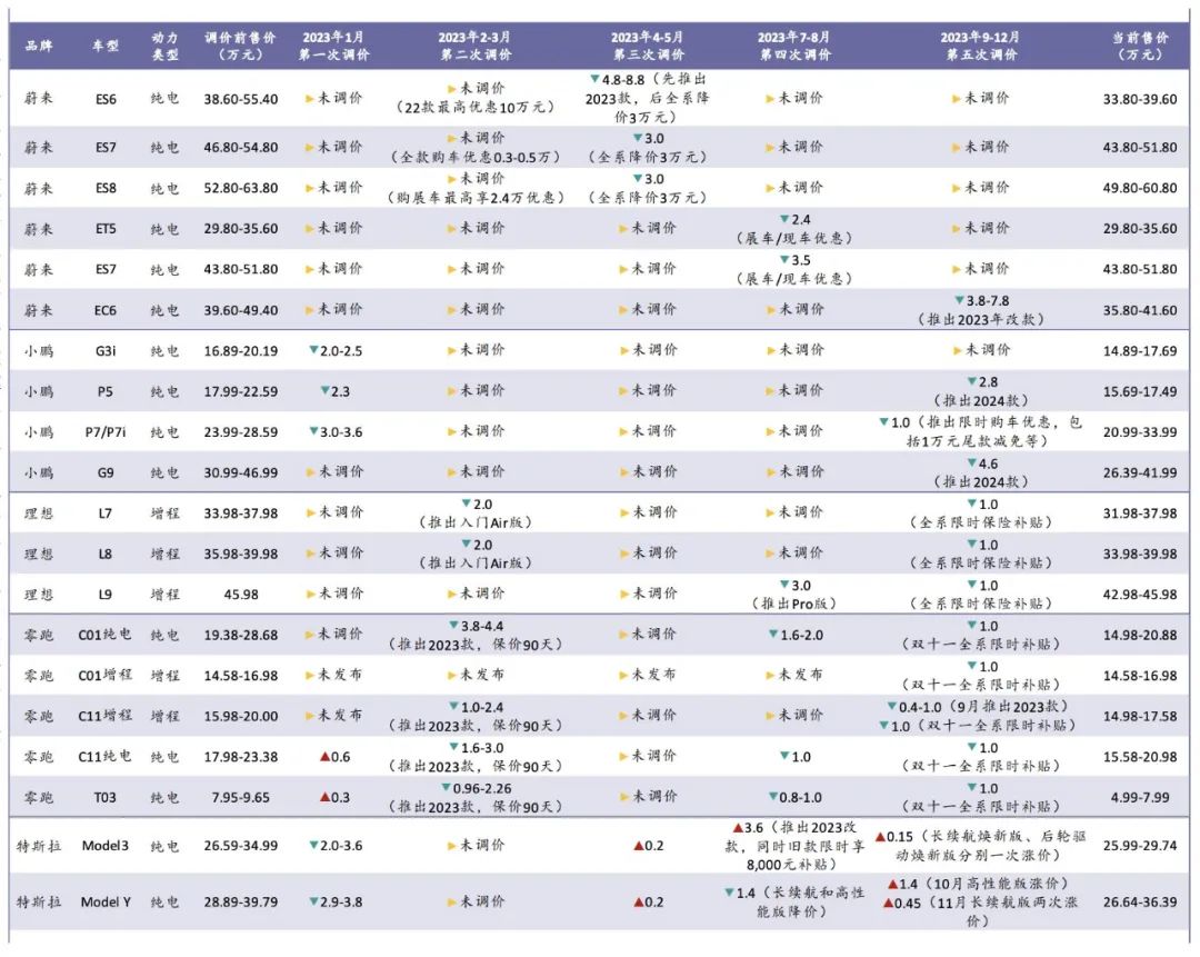 2023年以来主要新能源车企调价情况,图源浦银国际证券