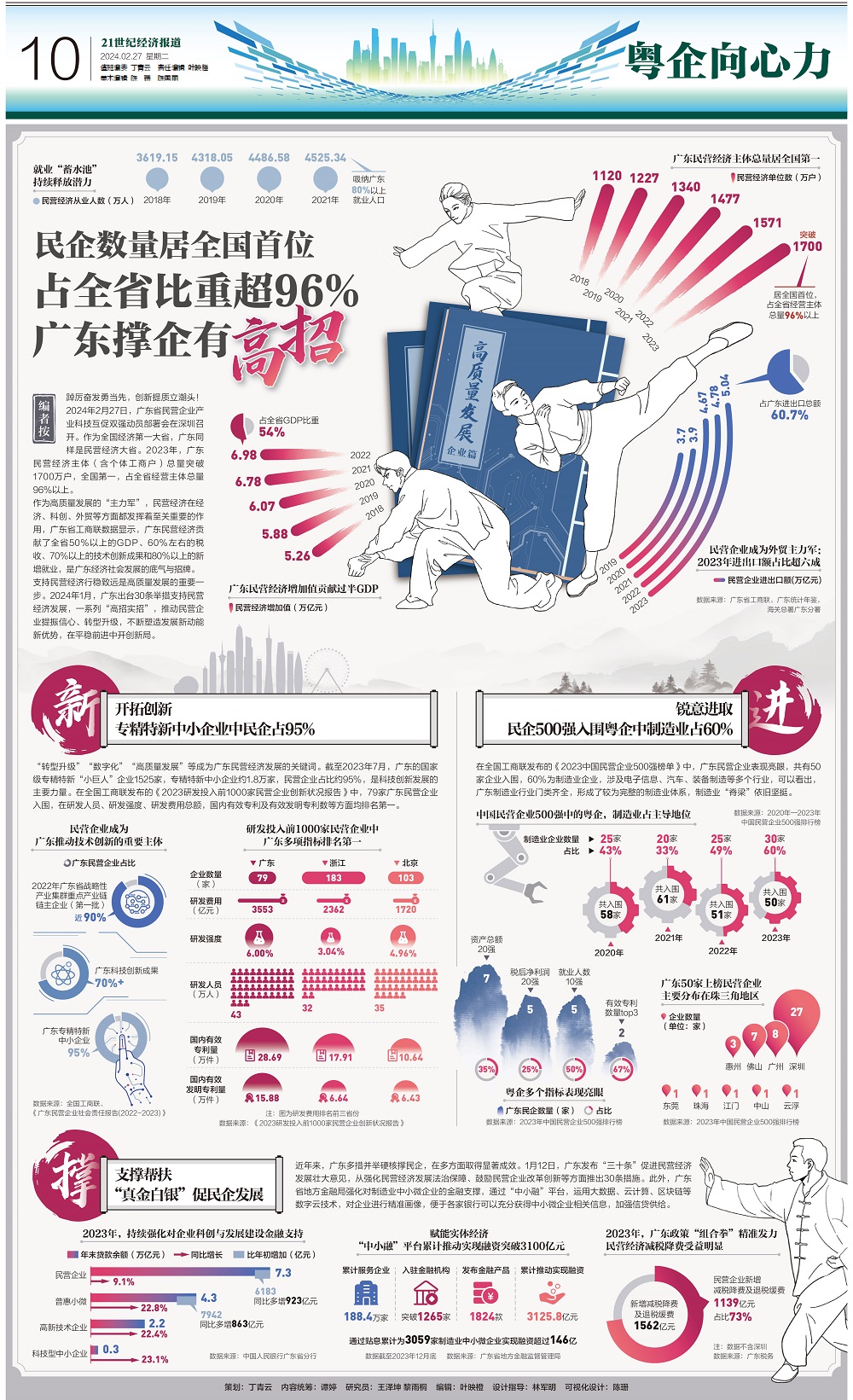 支持民营经济行稳致远是高质量发展的重要一步。2024年1月,广东出台30条举措支持民营经济发展,一系列“高招实招”,推动民营企业提振信心、转型升级,不断塑造发展新动能新优势,在平稳前进中开创新局。