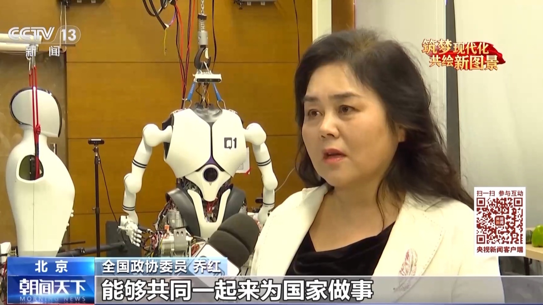 全国政协委员 乔红:希望政府、企业和科研院所能够共同一起来为国家做事,同时希望一个学术、技术和落地能够共融,这两个共融。科技部和工信部都进行了很好的正面回应,我们自己也在北京市的支持下,深度参与了北京市人形机器人创新中心。