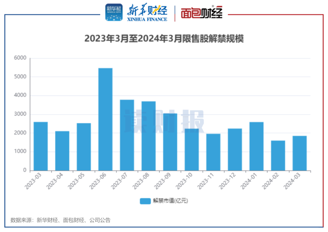 据统计,2024年3月,A股有252家公司的限售股面临解禁,合计解禁量约为127.15亿股,解禁规模1848.64亿元,环比上升约15.76%,同比下降约28.7%。