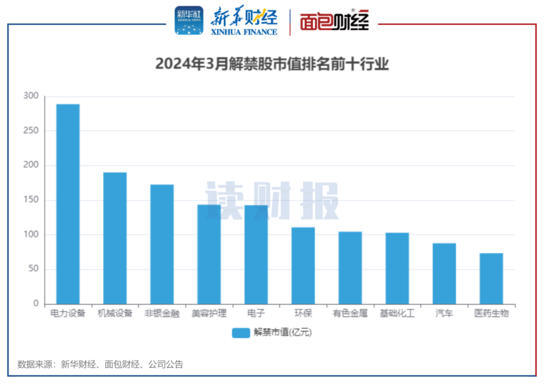 从行业分布来看,电力设备、机械设备、非银金融行业解禁市值分别位列前三。其中,中信证券解禁规模居首,解禁市值约172.5亿元。