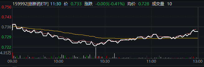 相关ETF方面,创新药ETF(159992)盘中一度跌近1.8%,截至早盘收盘,该ETF下跌0.41%,成交额超1亿元,换手率1.58%。