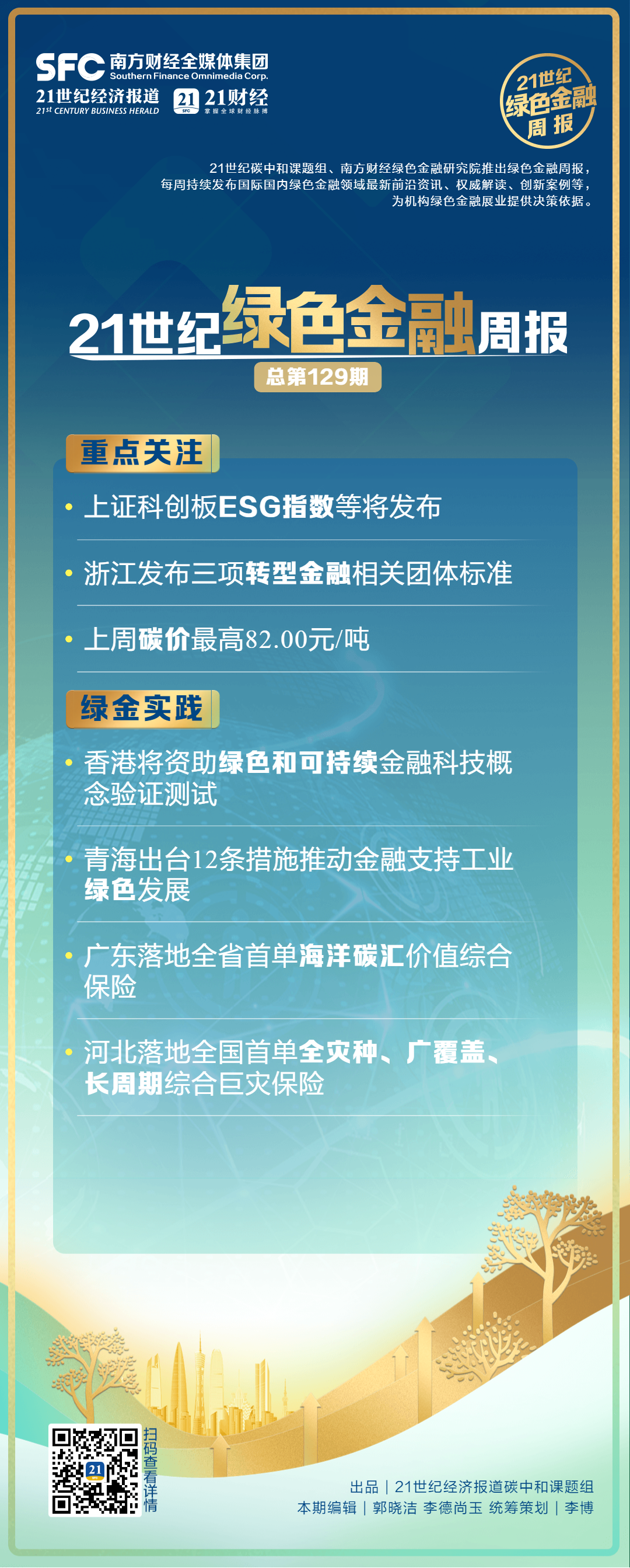 随着绿色金融市场的快速发展,相关的资讯和数据变得越来越丰富。绿色金融周报从宏观视角和机构绿色金融实践等角度,关注绿色金融领域的最新前沿动态,追踪绿色金融市场的最新趋势,为绿色金融相关参与方提供决策依据和参考。