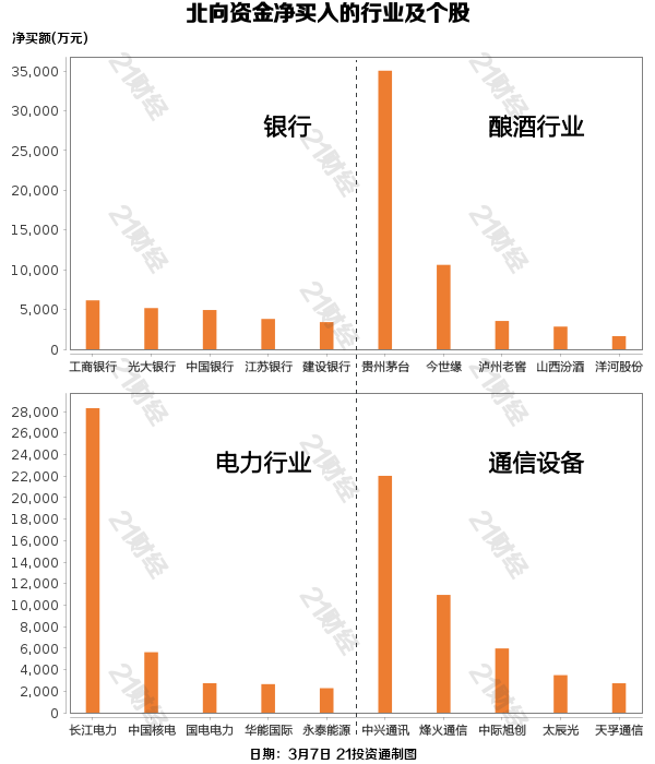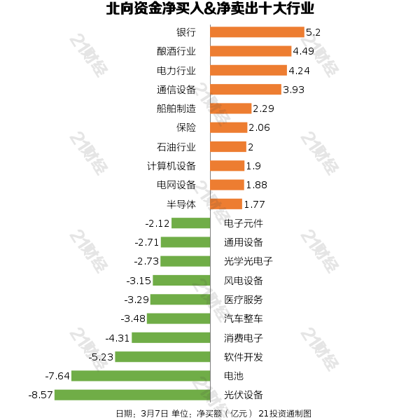 据21投资通智能监测,3月7日,北向资金净卖出21.41亿元,其中沪股通净买入1.04亿元,深股通净卖出22.44亿元。