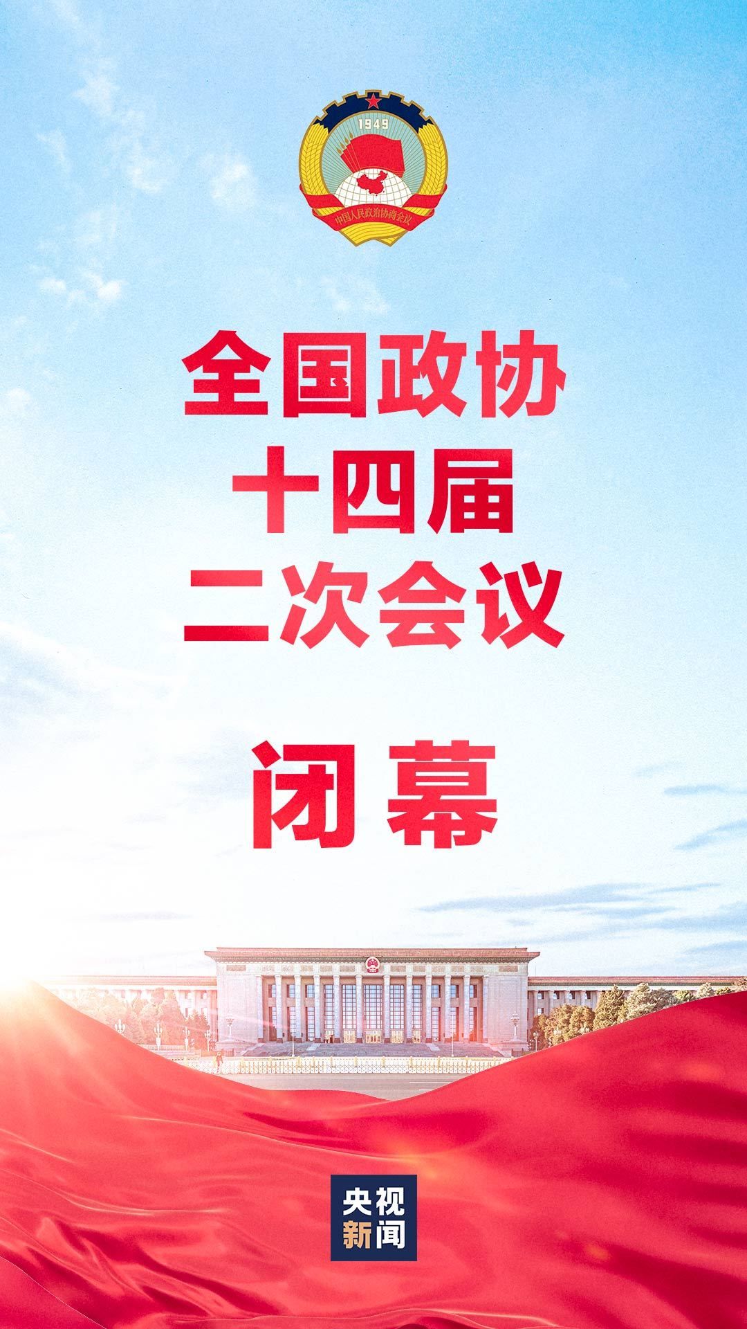 中国人民政治协商会议第十四届全国委员会第二次会议在圆满完成各项议程后闭幕。