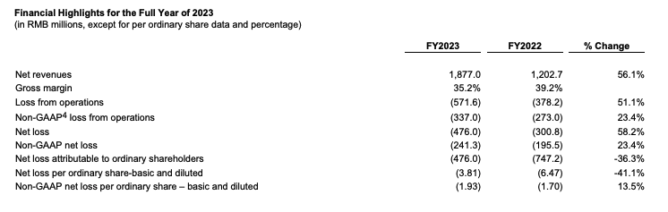 3 月 12 日,禾赛科技(纳斯达克: HSAI)公布了 2023 年第四季度及全年未经审计的财务数据。