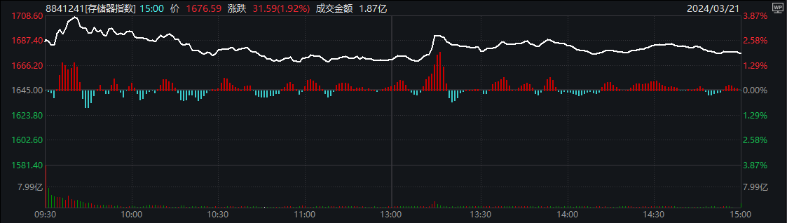 存储板块今日震荡拉升,截至收盘,Wind数据显示,存储器指数涨超1.9%,成分股中,德明利四天三板,大为股份涨停,恒烁股份涨超6%,佰维存储5%,澜起科技、兆易创新、江波龙、北京君正等多股跟涨。