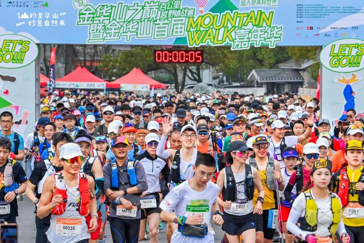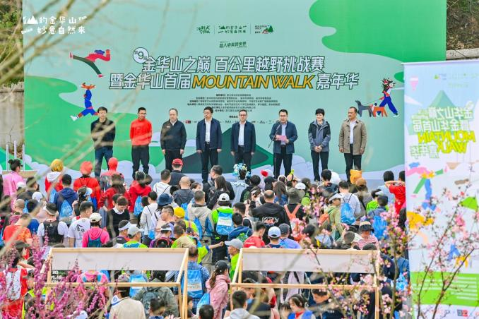 三月的金华山,绿意葱茏,山花浪漫。第九届金华山之巅·百公里越野挑战赛暨金华山首届Mountain Walk在“仙的金华山”激情开赛。早上8时30分,随着发令枪响,来自全国各地的3000名越野爱好者昂扬奋发地奔向金华山之巅,奔跑在春天里,尽享沿途美景。