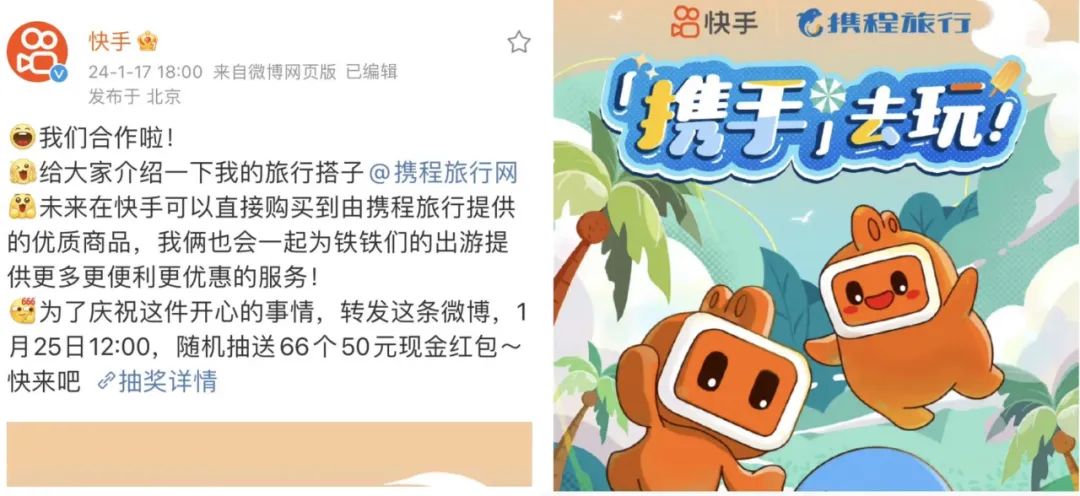 同程提供景区门票等产品;快手则以商家直播、达人探店等,为其打通品效销链路。