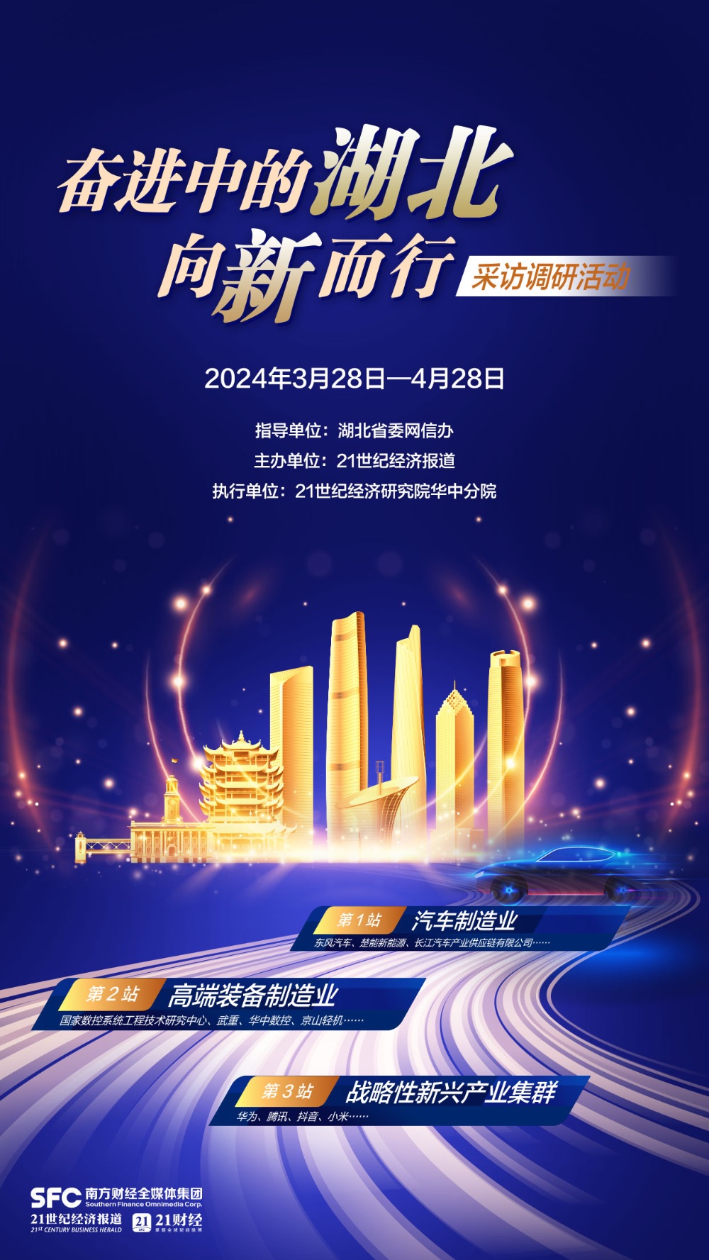 3月28日,由湖北省委网信办指导,21世纪经济报道主办,21世纪经济研究院华中分院承办的“奋进中的湖北——向新而行”采访调研活动正式启动。