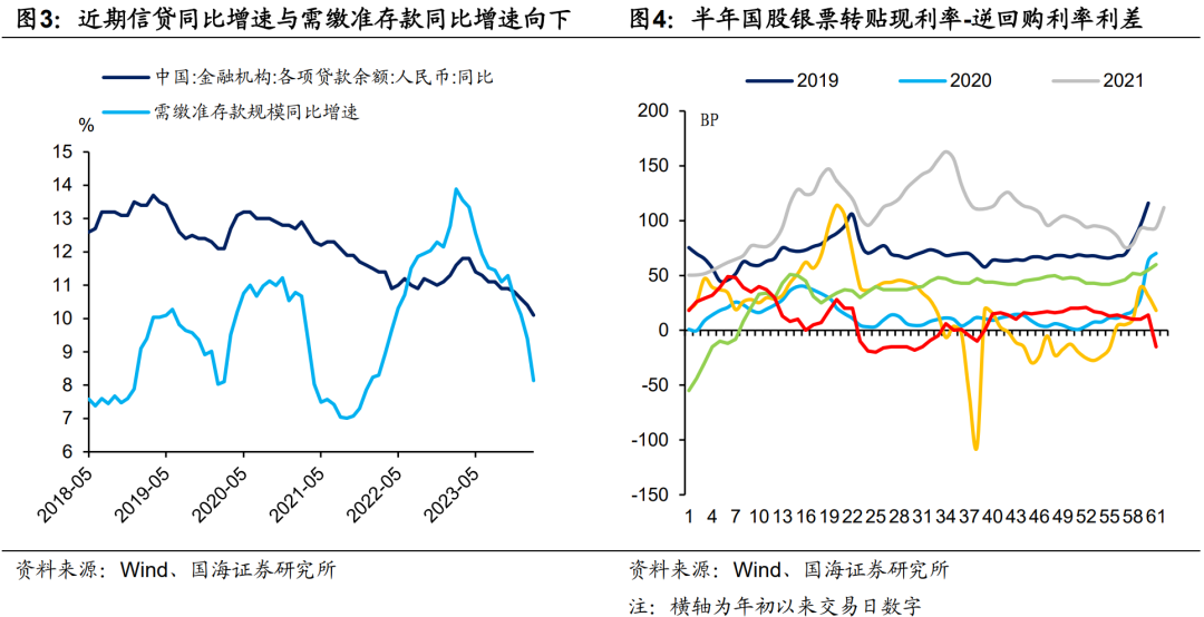 在此背景下,考虑到“需缴准存款” 同比增速与信贷同比增速方向基本一致,2024年2月“需缴准存款” 同比增速下行至8.1%(图3)。我们假设该增速4月份月份维持在这一水平,由此带来916亿元法定准备金需求,并消耗相应超储。