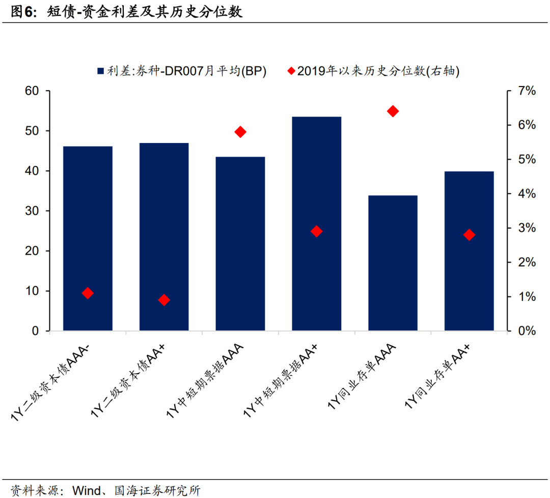 展望4月份,我们认为跨季后DR007中枢有望下行至1.8%附近。不过即使假设DR007下行至1.8%,主流短债-资金利差也仅在2019年以来历史分位数的15%左右或以下。我们认为这意味着短债利率或下行有底,做多空间有限。