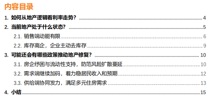 逻辑上,地产政策出台后会提振销售和投资,进而对债市构成压力。实际情况之所以有差异,原因在于地产政策放松意味着地产乃至基本面偏弱,从地产政策放松到销售和投资好转、再到引导基本面改善,上述过程需要一定时间,在此过程中货币政策大概率保持宽松甚至进一步加码宽松,利率可能继续处于下行通道。