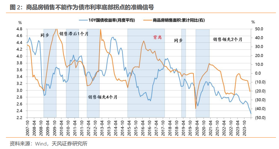 地产销售底部拐点与债市利率正相关,但2014-2015年商品房销售与债市利率明显背离。