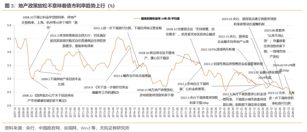 对于地产政策密集放松,债市通常会继续保持牛市状态,至少不是熊市。