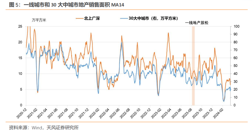 一线城市政策放松后,商品房销售受到阶段性提振。