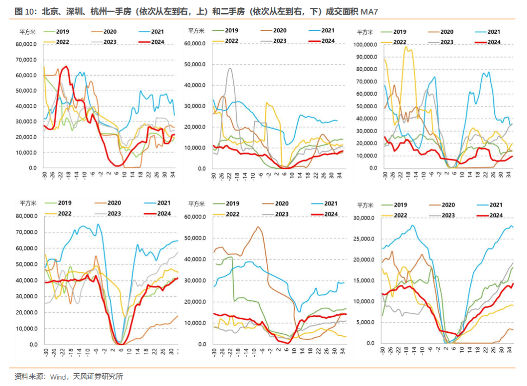 参考北京、深圳、杭州的一二手房销售数据,今年春节后销售回升斜率从历年来看属于较平缓水平。二手房成交表现总体好于新房。相关媒体亦报道,春节期间,新房市场表现较为平淡。