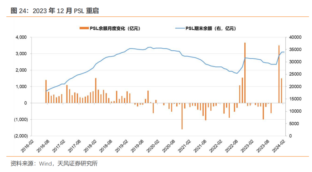 注意到2023年12月-2024年1月PSL重新大额投放。但关键还是要看总体投放规模,作为慢变量,其重在量变到质变,需要有一个最基本的累积量。这个累计量可能是多少?