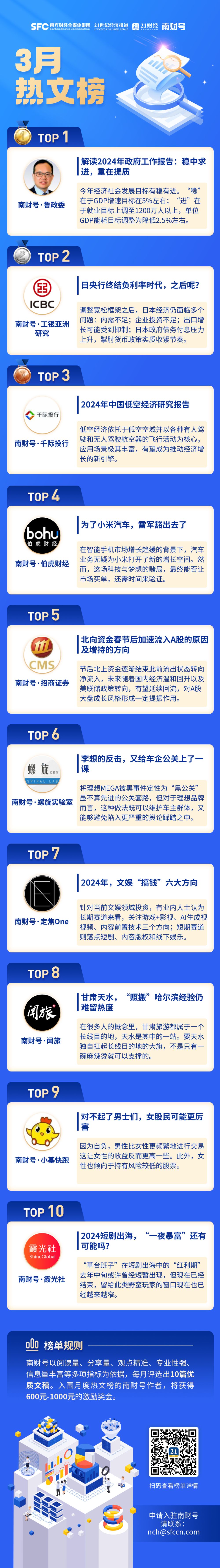 南财号以阅读量、分享量、观点精准、专业性强、信息量丰富等指标为依据,每月评选出10篇优质文稿。一起来看看本月有哪些好文上榜?