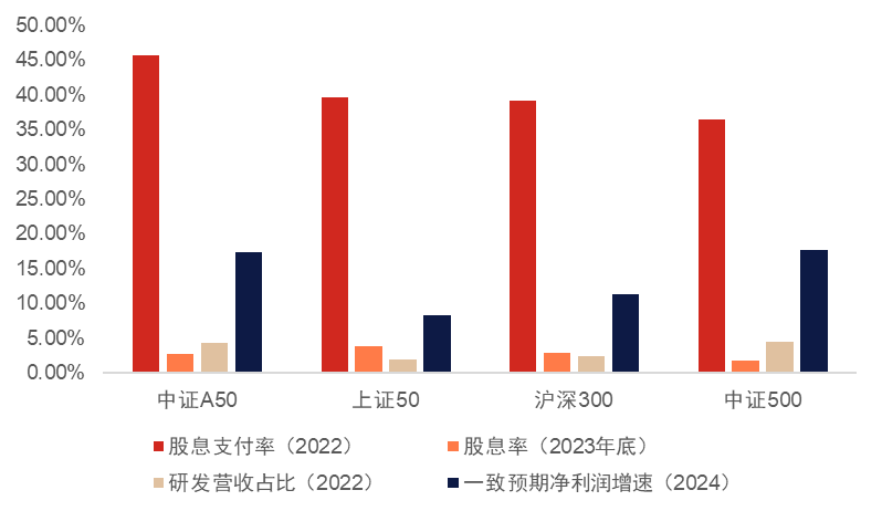 广发证券表示,市场表现方面,中证A50长期收益明显跑赢同类宽基,背后的支撑是其过硬的基本面。从2024年一致预测来看,中证A50指数ROE与业绩增速均大幅高于同类大盘价值宽基。此外,指数当前股息率2.8%,也高于全市场平均水平。