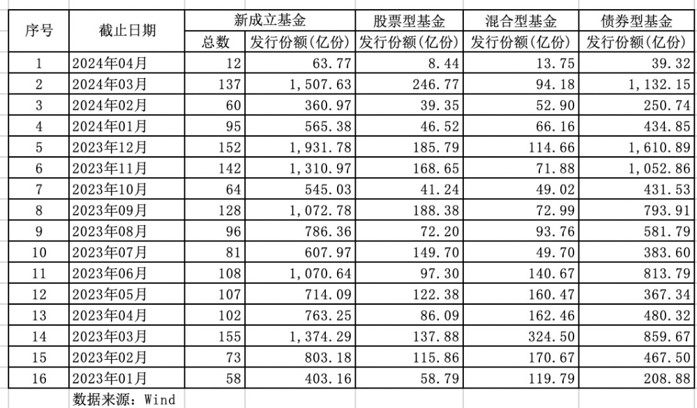 Wind数据显示,以基金成立日统计,3月新成立基金产品137只,发行总份额达1507.63亿份,相比1月、2月新成立规模565.38亿份、360.97亿份出现大幅增长。