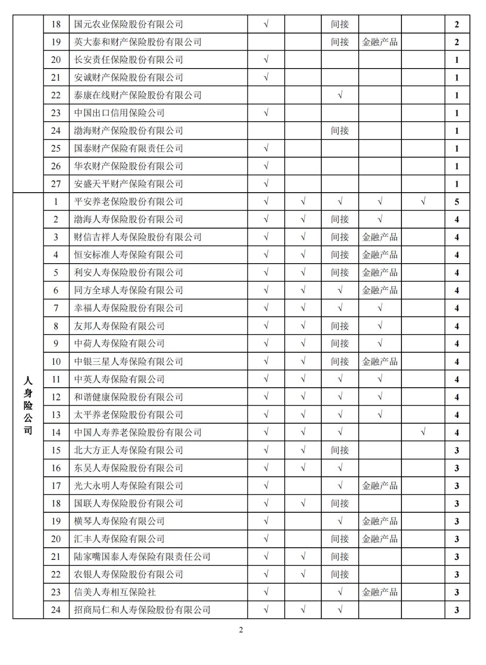 拥有信用风险投资能力的保险公司则有75家,在具备各类投资管理能力的保险公司中占比64%,较去年的80家减少5家。其中包括3家集团(控股)公司、17家财产险公司、55家人身险公司和1家再保险公司。