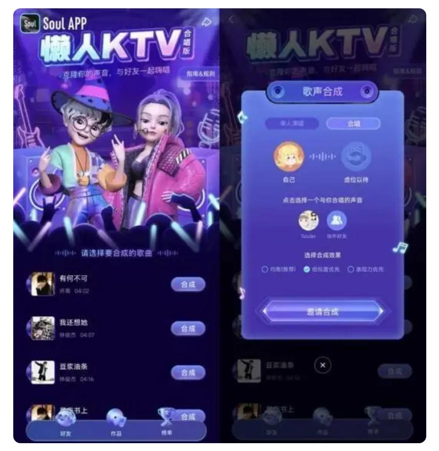 所以,基于自研“伶伦”引擎的“懒人KTV”活动中,特别强调社交玩法,不仅是单人唱歌,用户还可以邀请多人一起AI KTV合唱,让个体在邀请、合唱、分享的过程中,完成社交,深化关系。