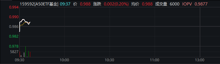 4月9日,三大指数开盘集体上涨,中证A50指数盘中走强,截至发稿该指数上涨0.20%。相关ETF方面,A50ETF基金(159592)盘中飘红,截至发稿上涨0.20%。