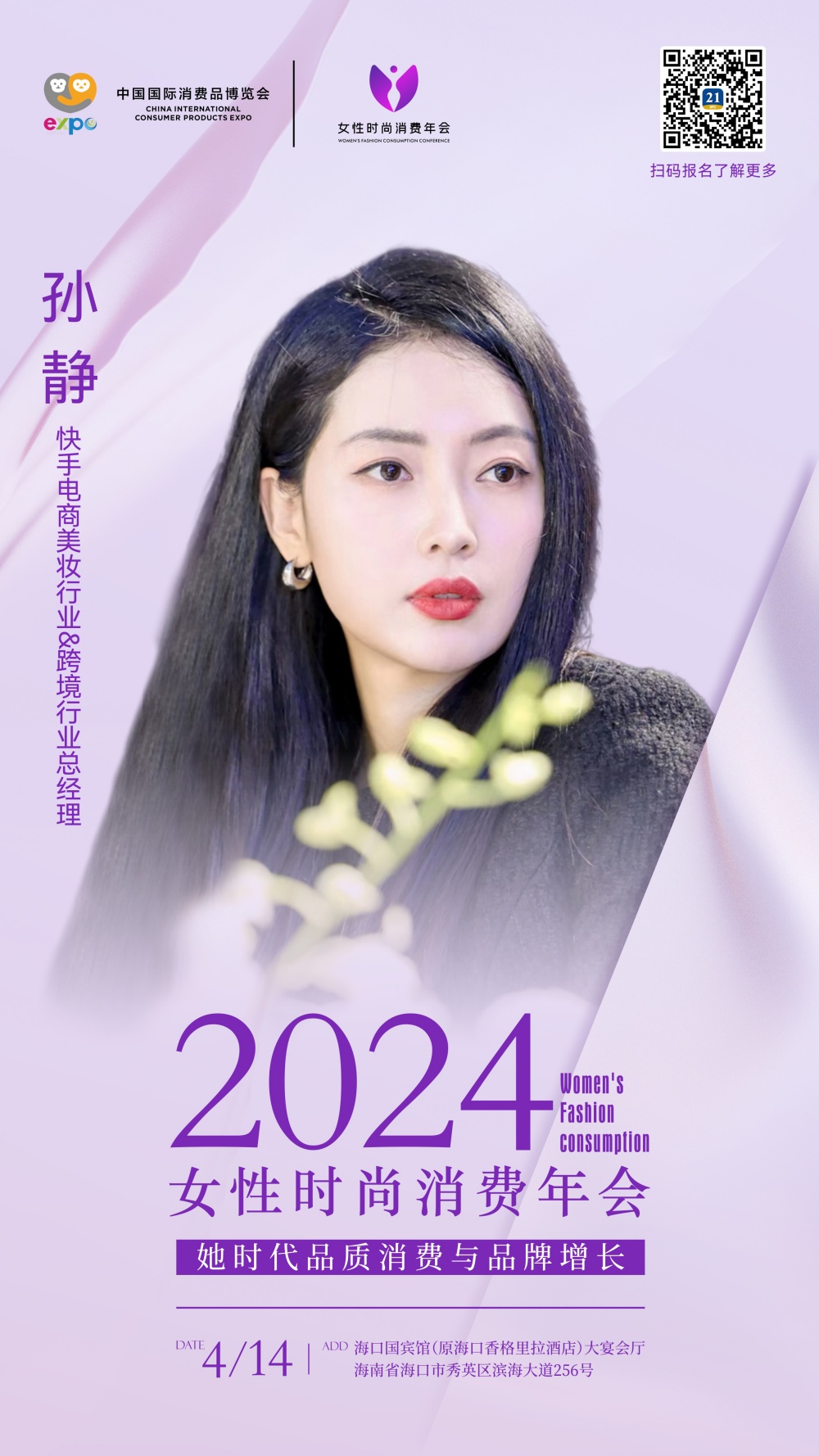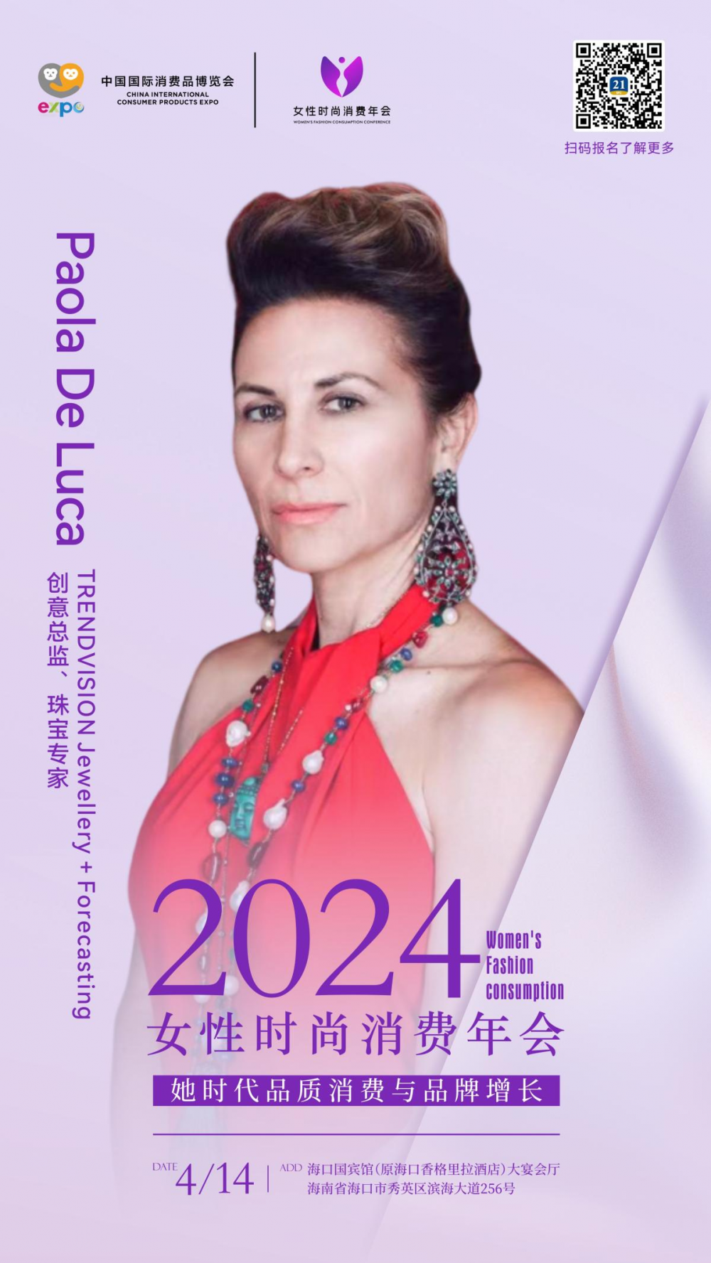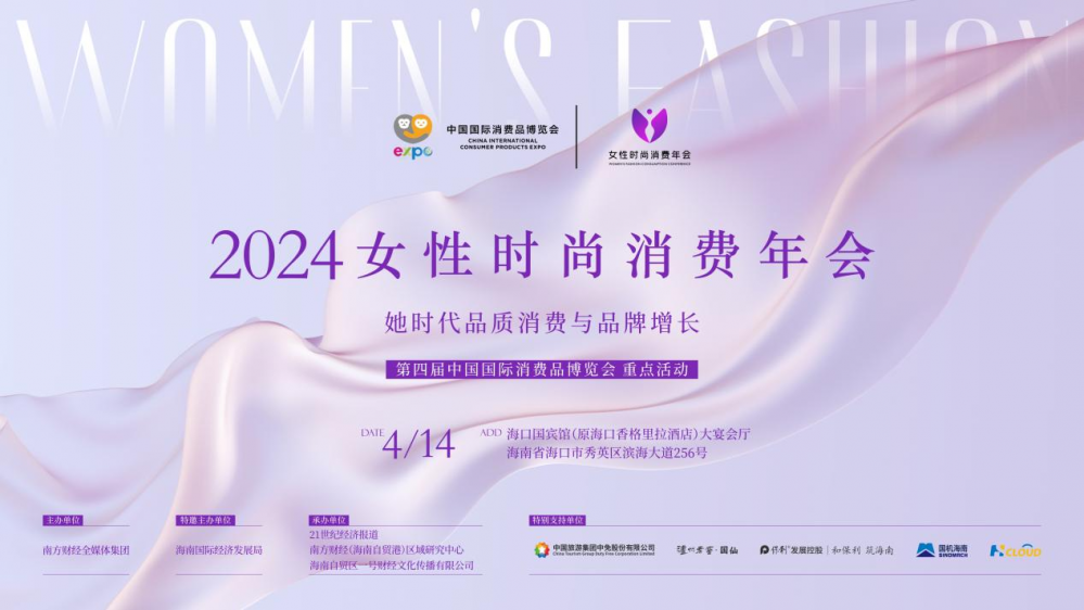 第四届中国国际消费品博览会重点活动--2024《女性时尚消费年会》将于4月14日在海口国宾馆启幕。