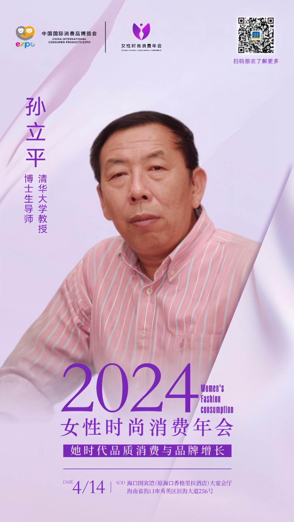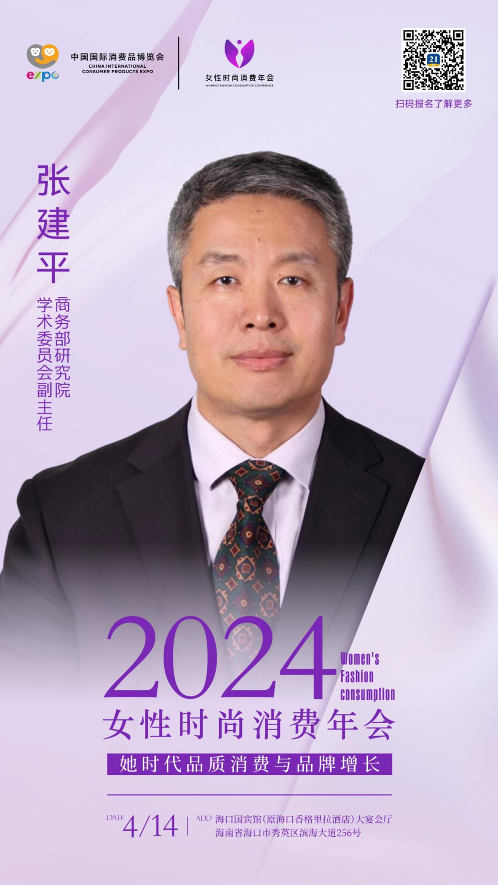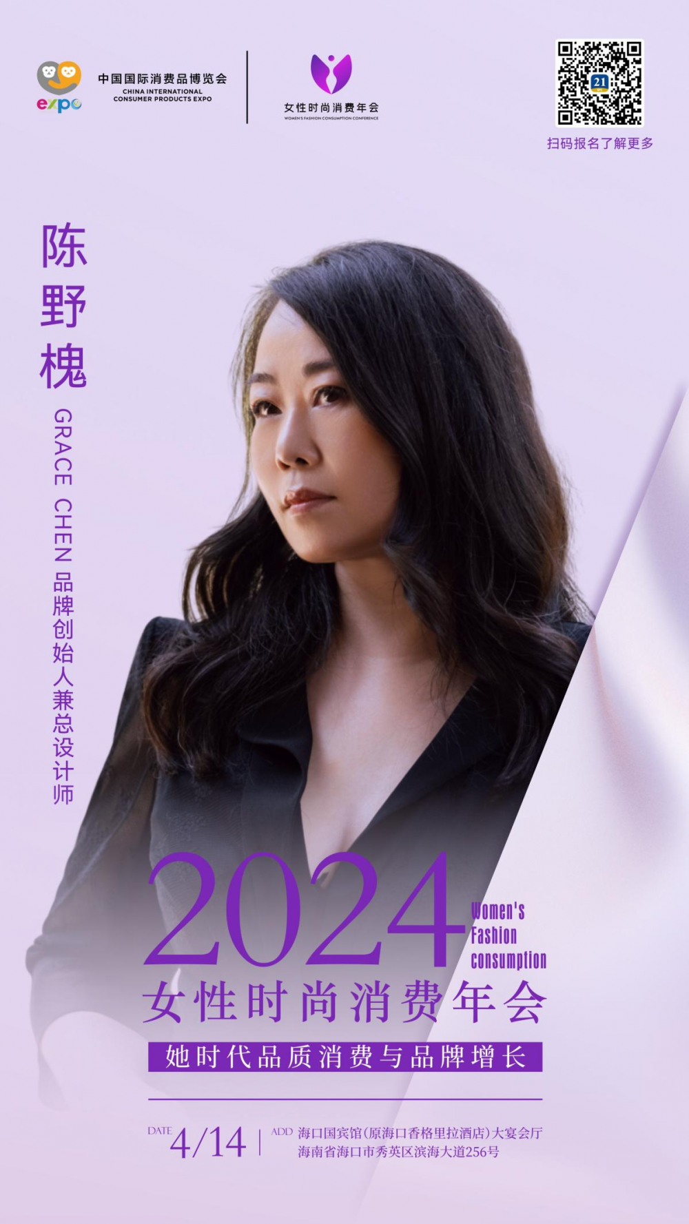 第四届中国国际消费品博览会重点活动--2024《女性时尚消费年会》将于4月14日在海口国宾馆启幕。